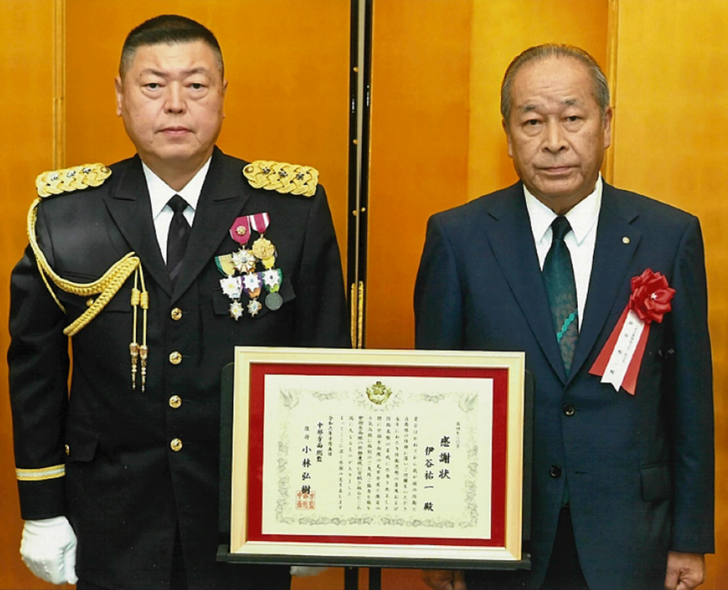 感謝状授与 令和6年10月5日 中部方面総監より感謝状を授与 八尾自衛隊協力会の活動を通じて、自衛隊に対する理解の促進、八尾駐屯地の充実発展、隊員の士気高揚に多大な貢献により、中部方面総監より感謝状を授与される、協力会副会長の伊谷祐一さん 8月 八尾駐屯地盆踊り花火大会共催 前の記事 令和6年11月24日 八尾駐屯地司令より感謝状を授与 次の記事
