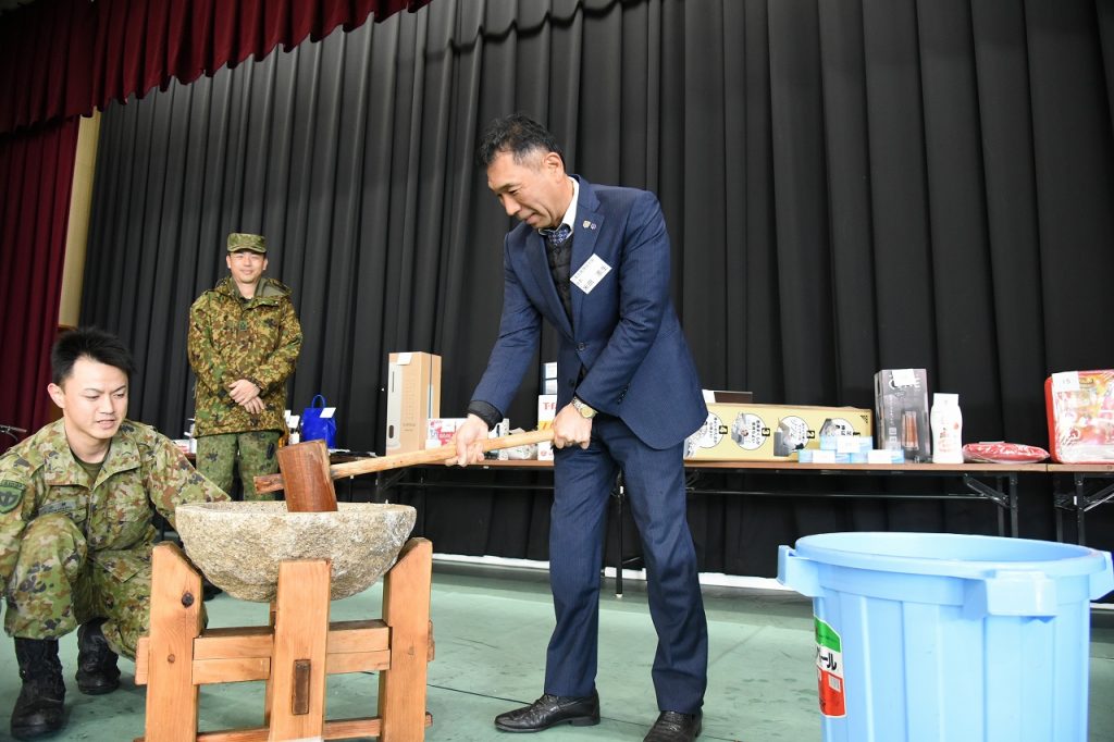 定例行事 令和6年12月18日 八尾駐屯地年末行事での餅つき 八尾駐屯地年末行事において、餅つきを行う協力会会長 令和6年11月24日 駐屯地創立70周年(中部方面航空隊創隊62周年) 前の記事 令和7年1月11日 八尾自衛隊協力会新春交礼会 次の記事
