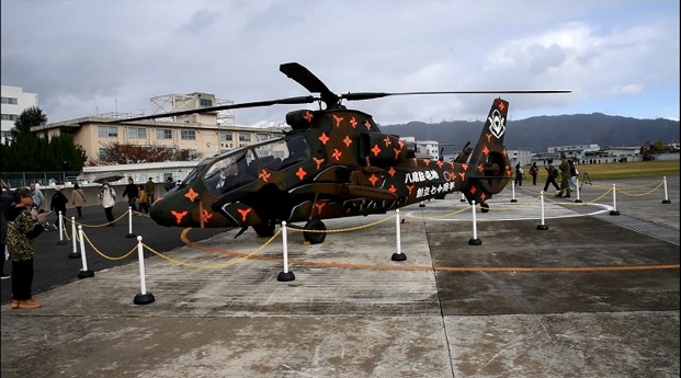装備品展示にあたり、記念塗装を施した観測ヘリコプターOH-1