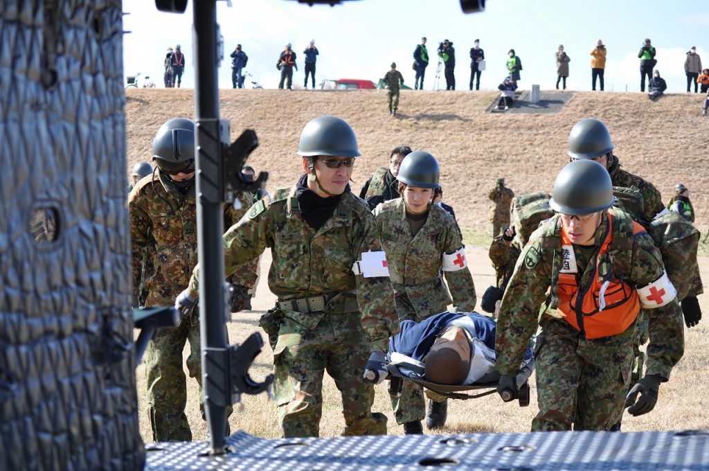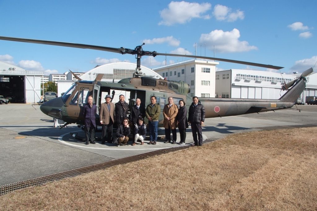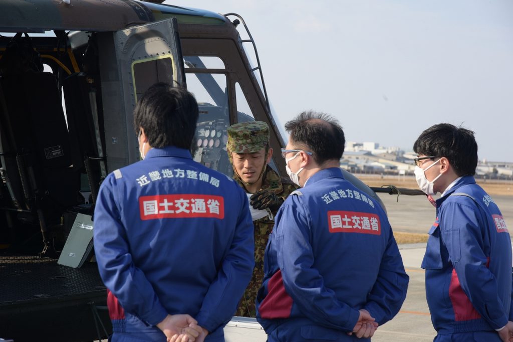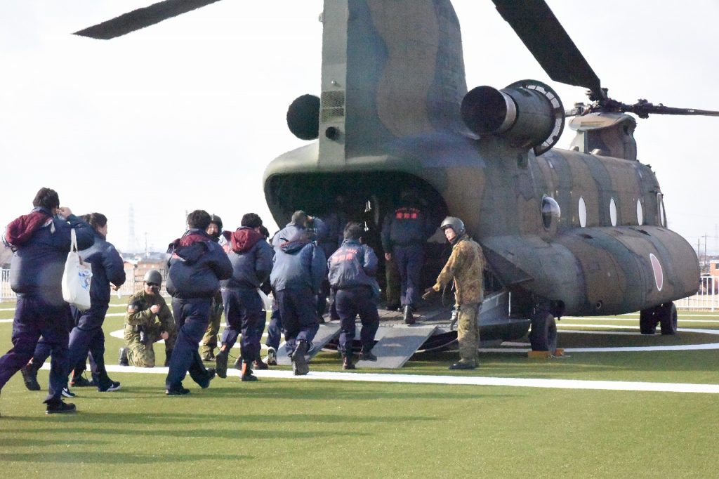 愛知県の職員と共同で訓練を行う輸送ヘリコプターDH-47の様子